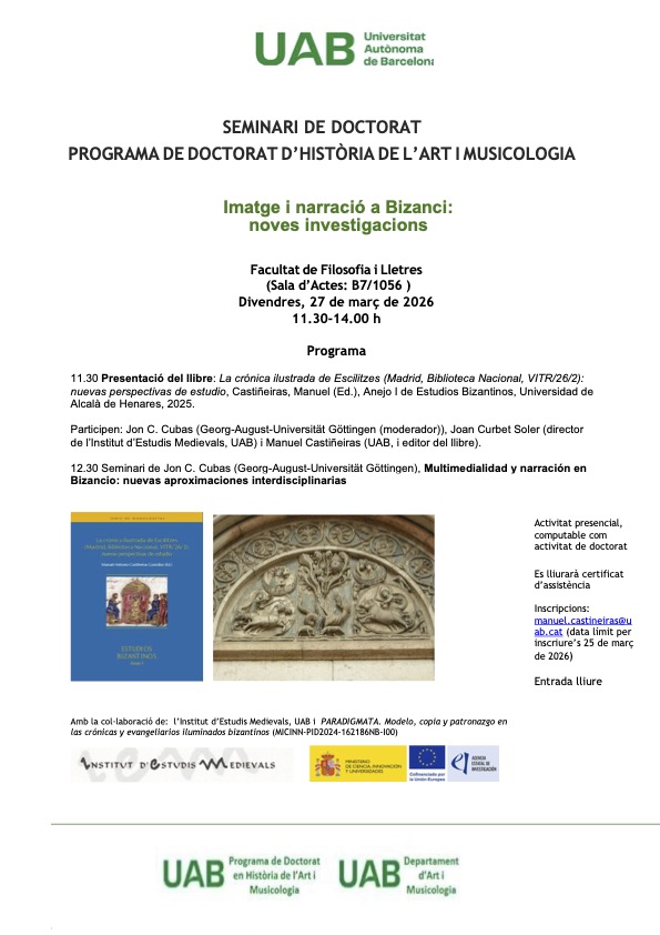 Imagen y narración en Bizancio: nuevas investigaciones. Seminario de doctorado UAB